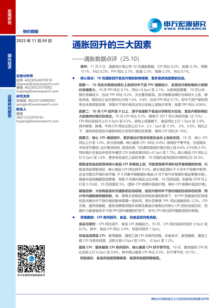 《通胀回升的三大因素——通胀数据点评(25.10)》